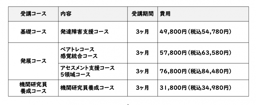※複数の講座を受講されている方は講座数×3か月の間受講することが可能です。 例:①発達障害支援コースを受講=3か月間受講可能 ②発達障害支援コースとアセスメント支援コースを受講=6か月間受講可能 |